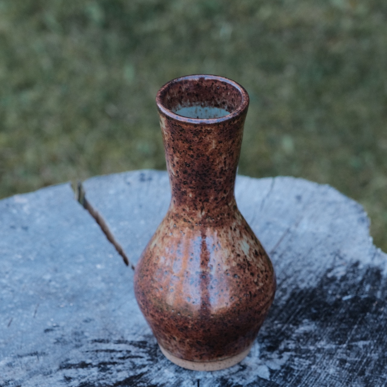Angled stoneware vase, wheel-thrown from mixed stoneware and hand-painted with “Oolong Gloss Shino” glaze.