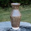 Angular stoneware vase, wheel-thrown from white stoneware and hand-painted with “Muddy Waters” glaze.