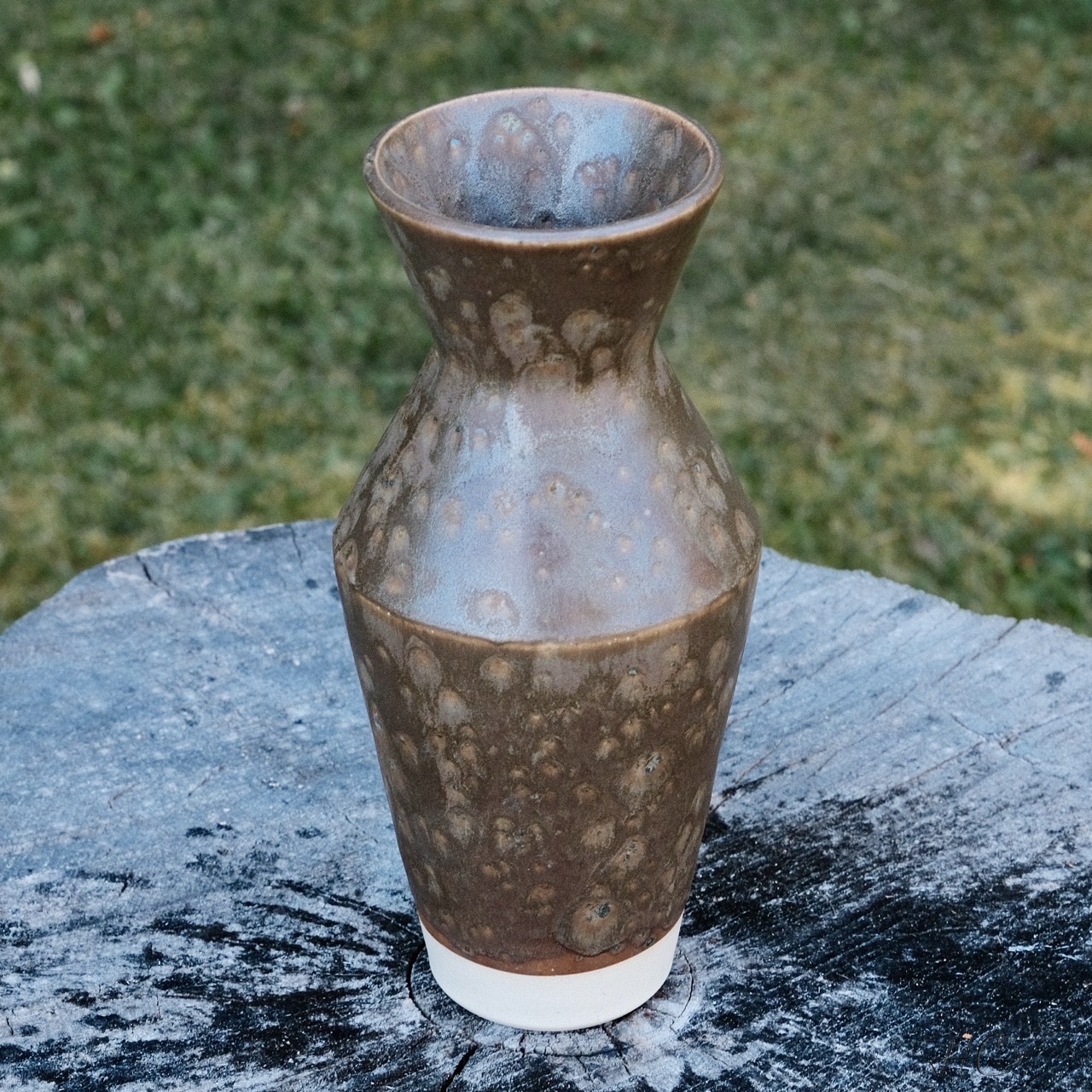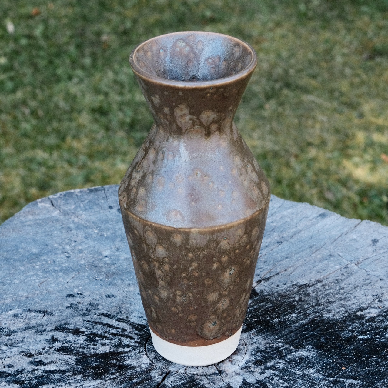 Angular stoneware vase, wheel-thrown from white stoneware and hand-painted with “Muddy Waters” glaze.