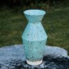 Angular stoneware vase, wheel-thrown from white stoneware and hand-painted with “Cenote” glaze.