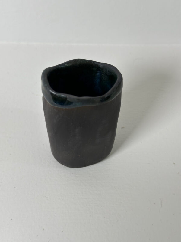 Black porcelain toothpick/matches holder, wheel-thrown from black porcelain and coated with “Oribe” glaze. Read more…
