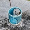 Stoneware candle holder, wheel-thrown from white stoneware and hand-painted with “Micro Cerulean” glaze.
