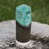 Stoneware dimpled vase, wheel-thrown from speckled stoneware and hand-painted with “Satin Patina” and “Rusted Iron” glazes. Read more…