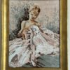 Danseuse (Dancer) is a cotton canvas created by SEG de Paris in France. The needlepoint was meticulously cross-stitched by hand over many months. The final product was professionally framed by TRULY YOURS CUSTOM FRAMING, INC. It includes the UV70 glass which protects the needlepoint from elemental damage and provides the following: