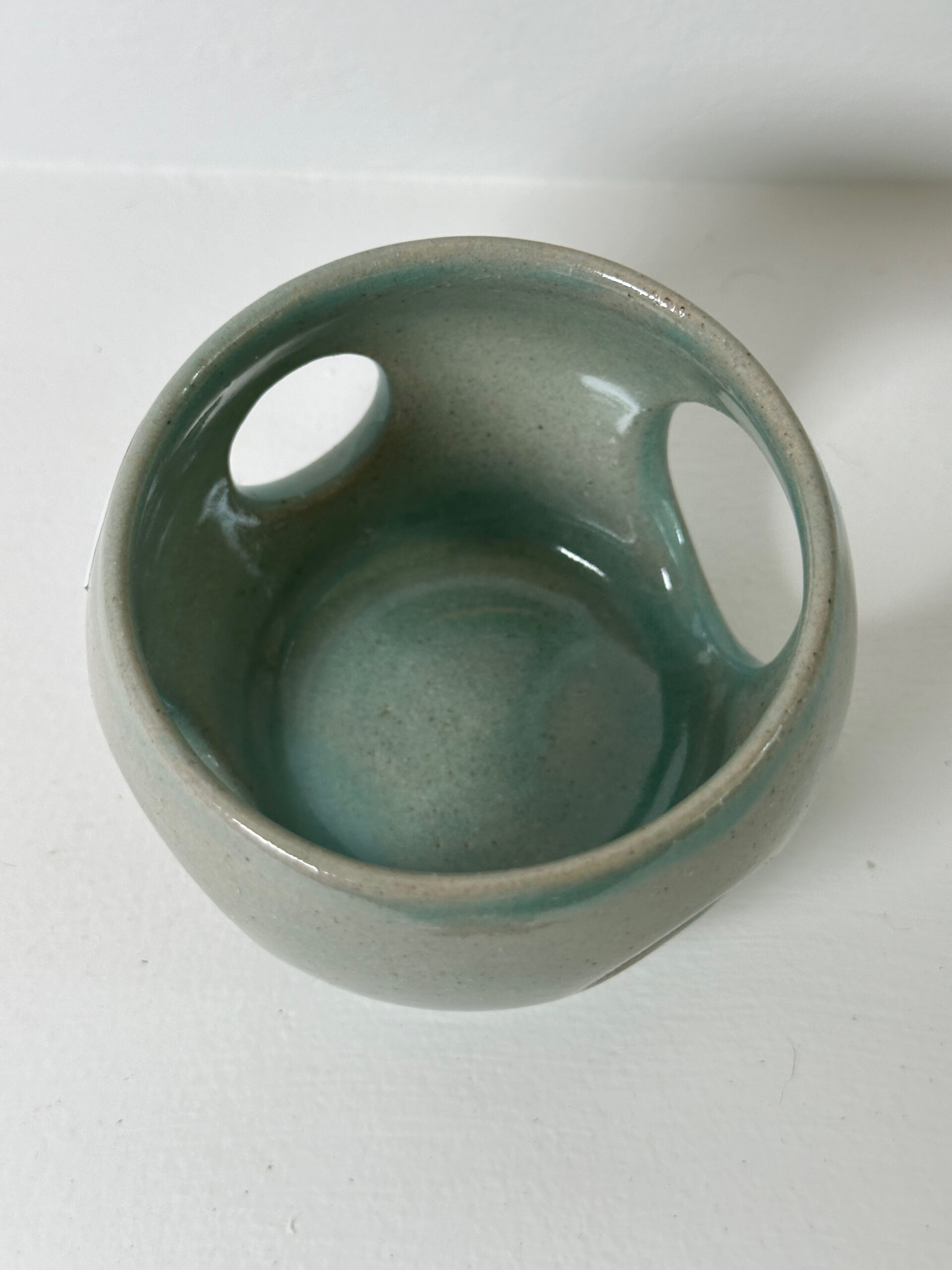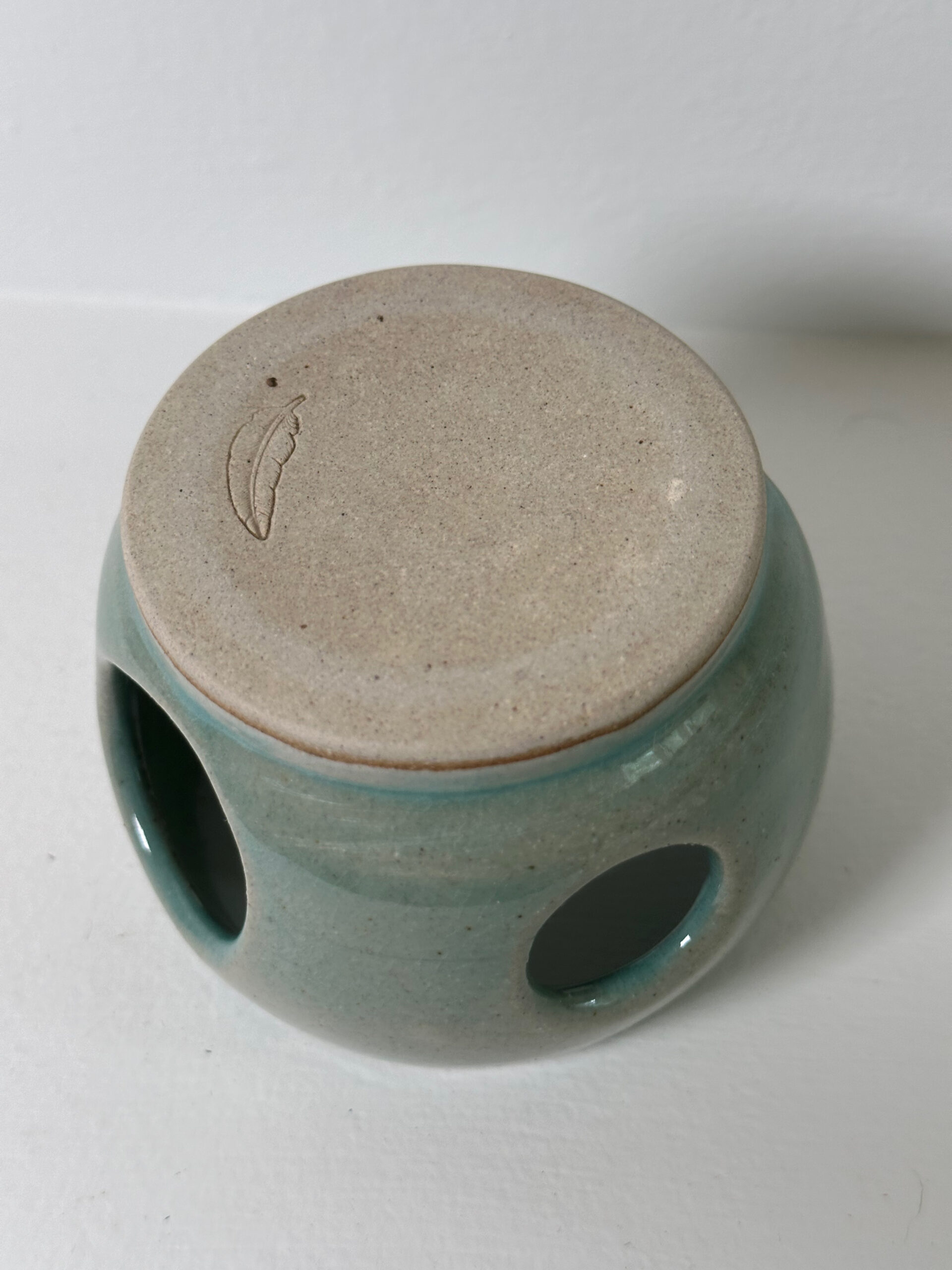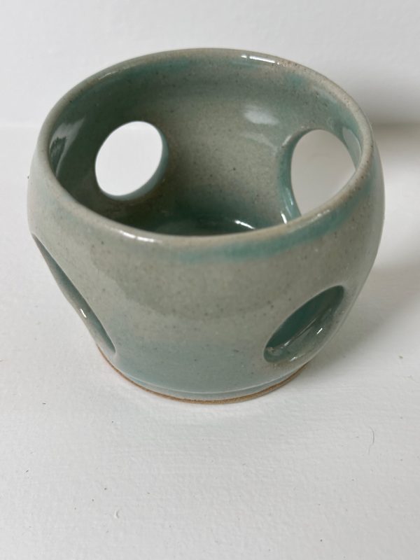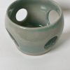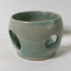 Draycott stoneware candle holder, wheel-thrown from white stoneware and coated with “Faux Celadon” glaze.