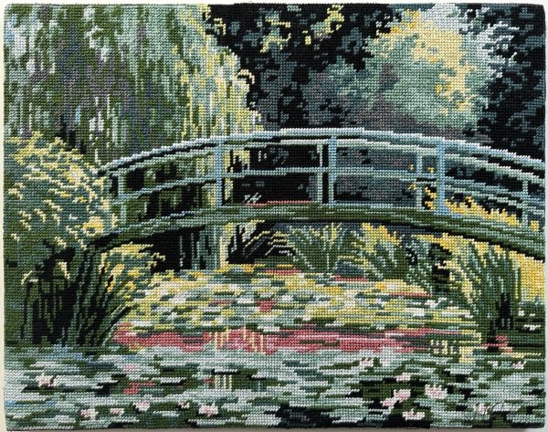 Hand Cross-Stitched Japanese Footbridge Needlepoint based on Claude Monet’s painting