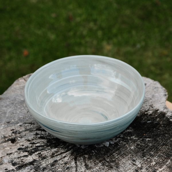 Large marbled porcelain bowl, wheel-thrown from marbled black, blue, yellow and white porcelain and coated with “Crystal Clear” glaze. Read more…