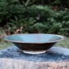 Large platter with flat rim, wheel-thrown from white stoneware and hand-painted with “Matcha Gloss Shino” glaze.