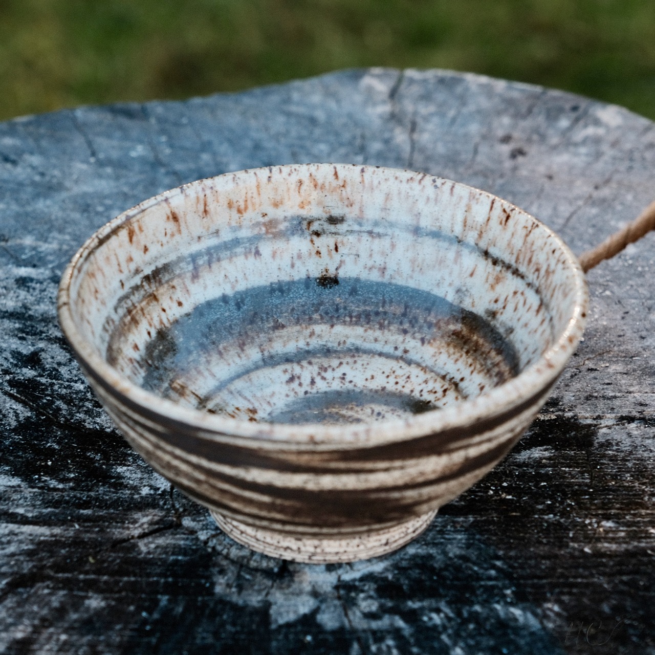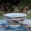 Marbled black and speckled stoneware bowl, wheel-thrown from marbled speckled and black stoneware and coated with “Crystal Clear” glaze.