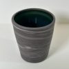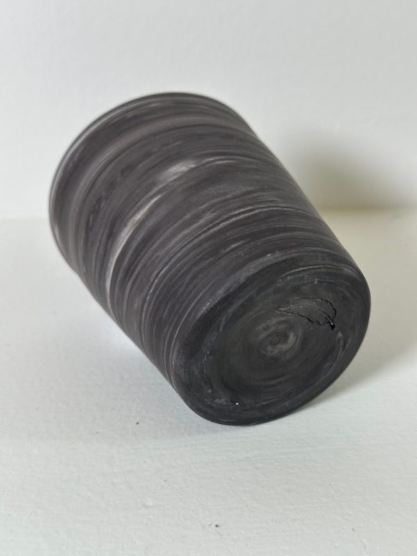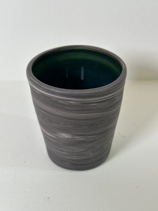 Marbled black and white porcelain tumbler/vessel, wheel-thrown from marbled black and white porcelain and coated with “Oribe” glaze.