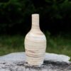 Marbled stoneware bottle vase, wheel-thrown from marbled white and red stoneware and coated with “Crystal Clear” glaze.