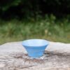 Small marbled porcelain bowl, wheel-thrown from marbled blue, white and lavender porcelain and coated with “Crystal Clear” glaze.