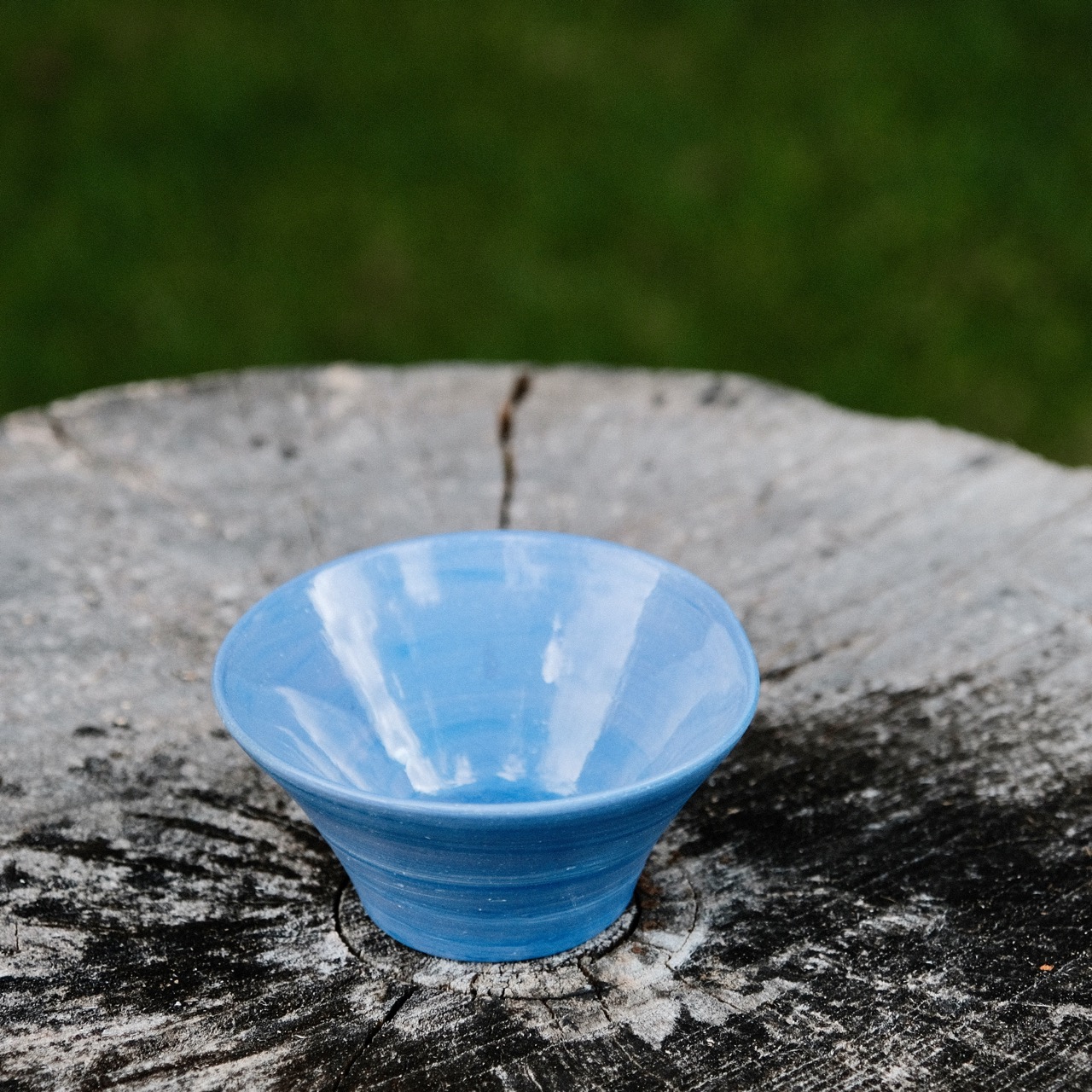 Small marbled porcelain bowl, wheel-thrown from marbled blue, white and lavender porcelain and coated with “Crystal Clear” glaze.