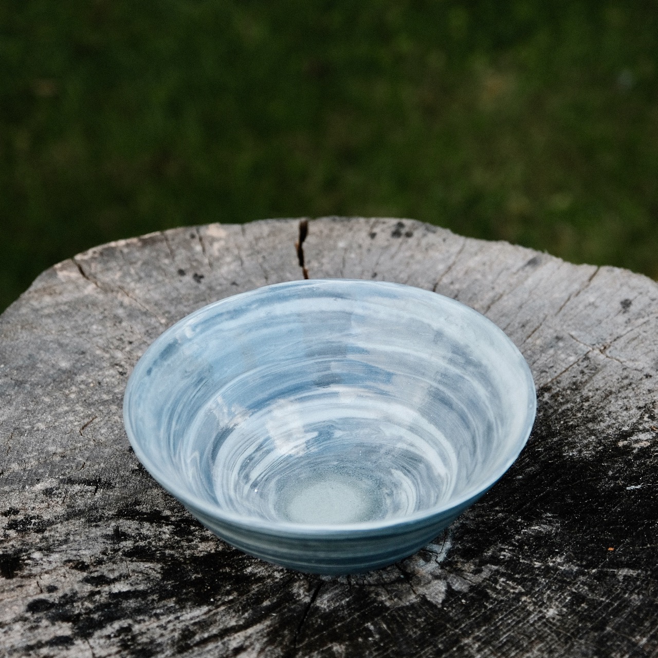 Marbled bowl, wheel-thrown from marbled black and white porcelain and coated with “Crystal Clear” glaze. Read more…