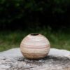 Marbled stoneware moon jar/orb vase, wheel-thrown from marbled speckled and red stoneware and coated with “Crystal Clear” glaze.