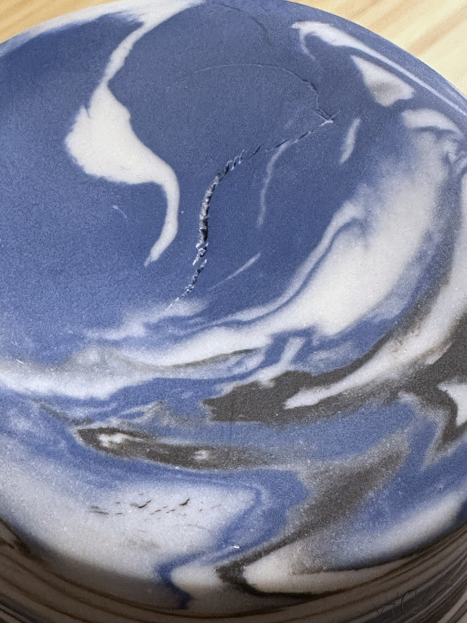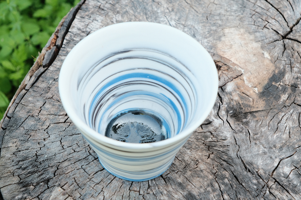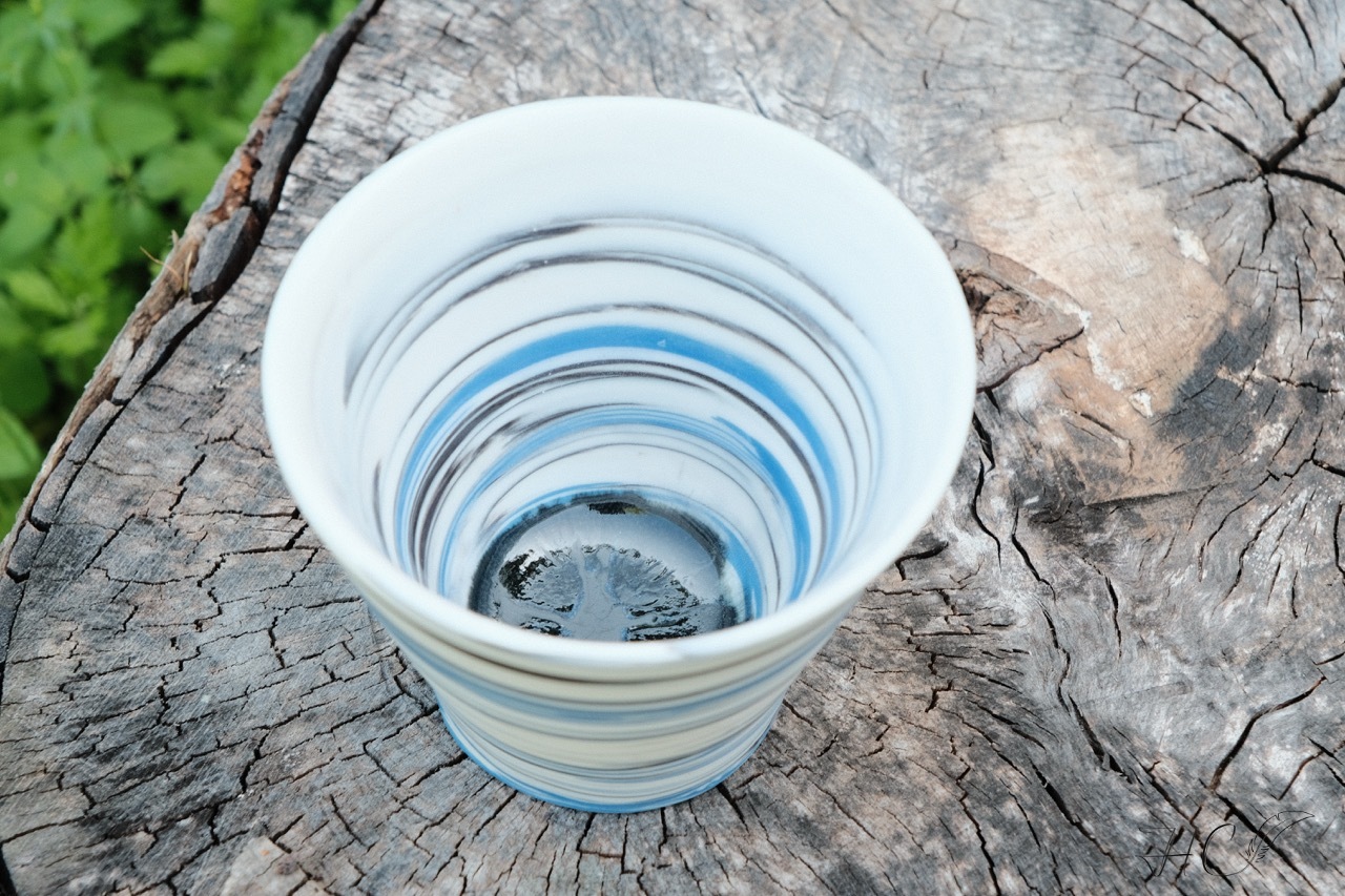 Marbled porcelain bowl and vase, wheel-thrown from marbled white and blue porcelain and coated with “Charcoal” and “Crystal Clear” glazes. Read more…
