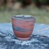 Marbled stoneware cups, wheel-thrown from marbled red and black stoneware and coated with “Crystal Clear” glaze.