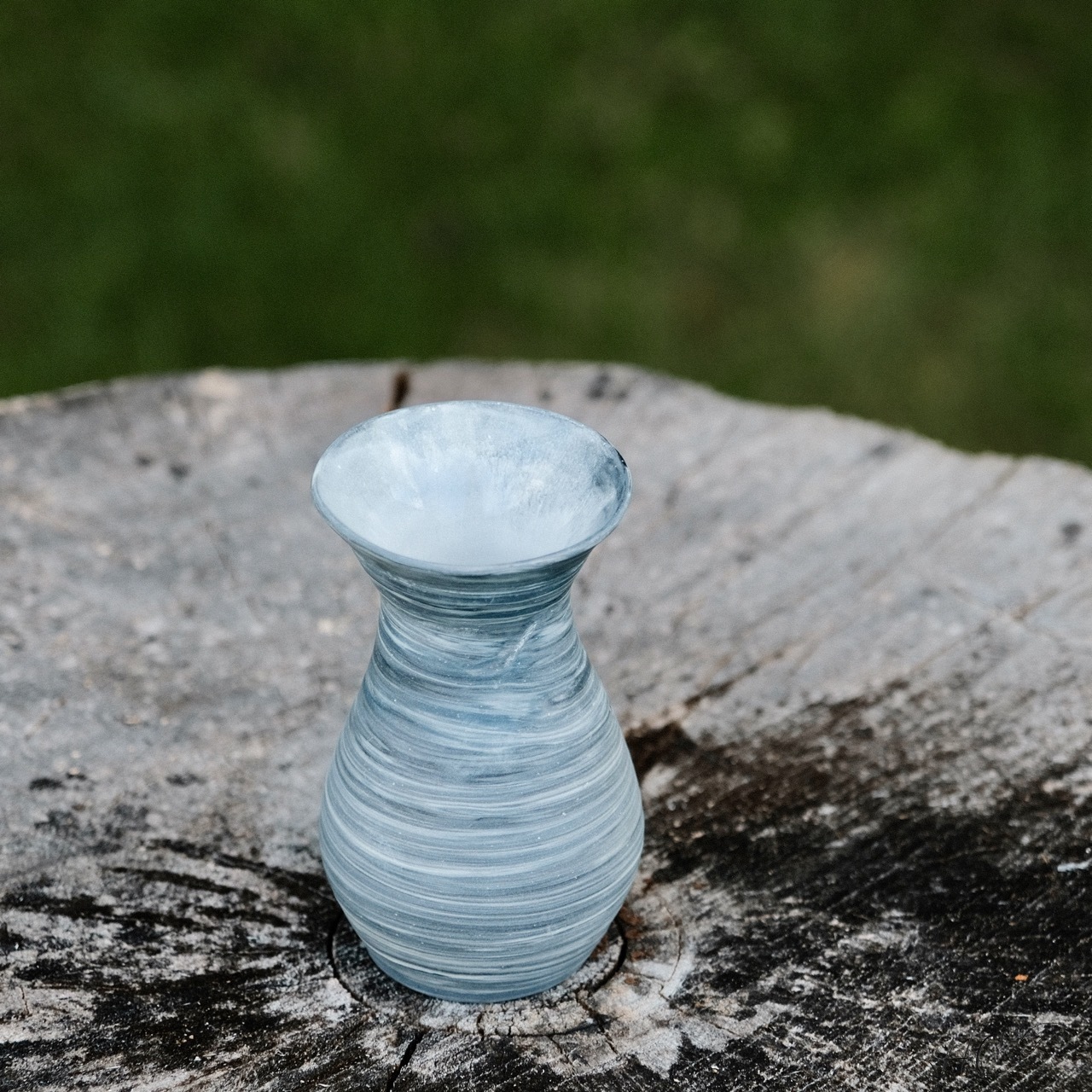 Marbled porcelain vase, wheel-thrown from marbled white and black porcelain and coated with “Bright White” glaze.
