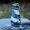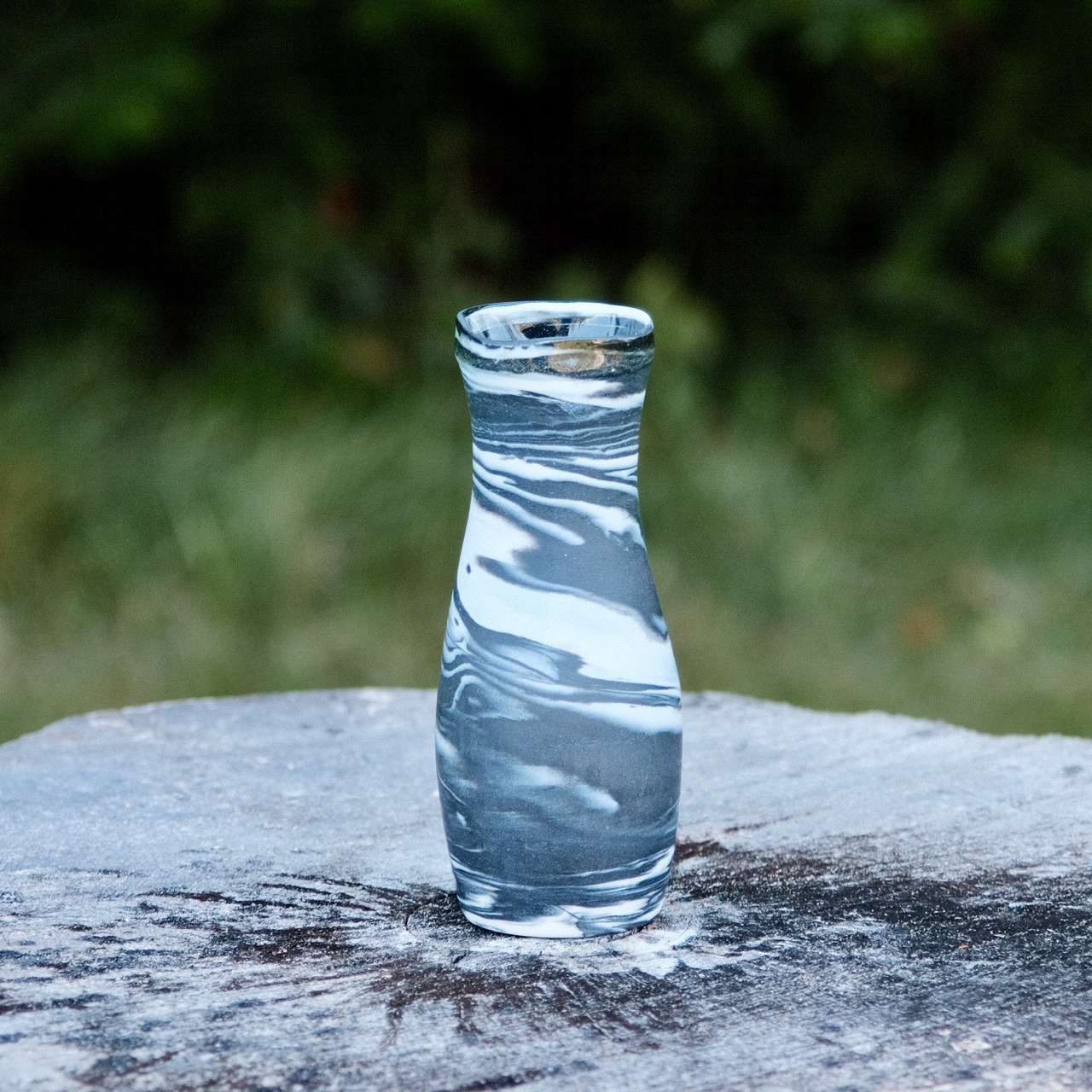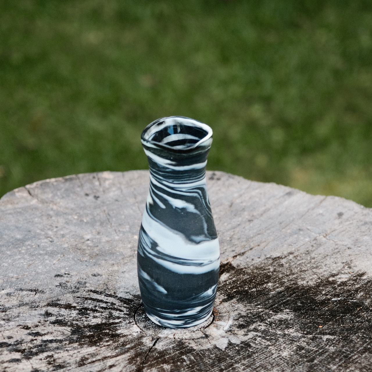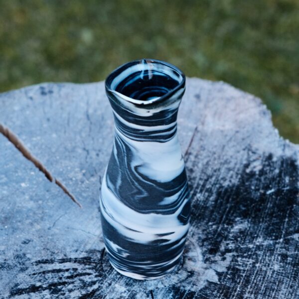 Marbled porcelain vase, wheel-thrown from marbled white and black porcelain and coated with “Crystal Clear” glaze.