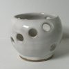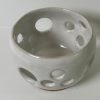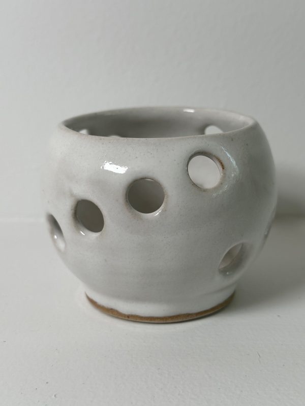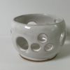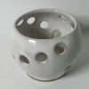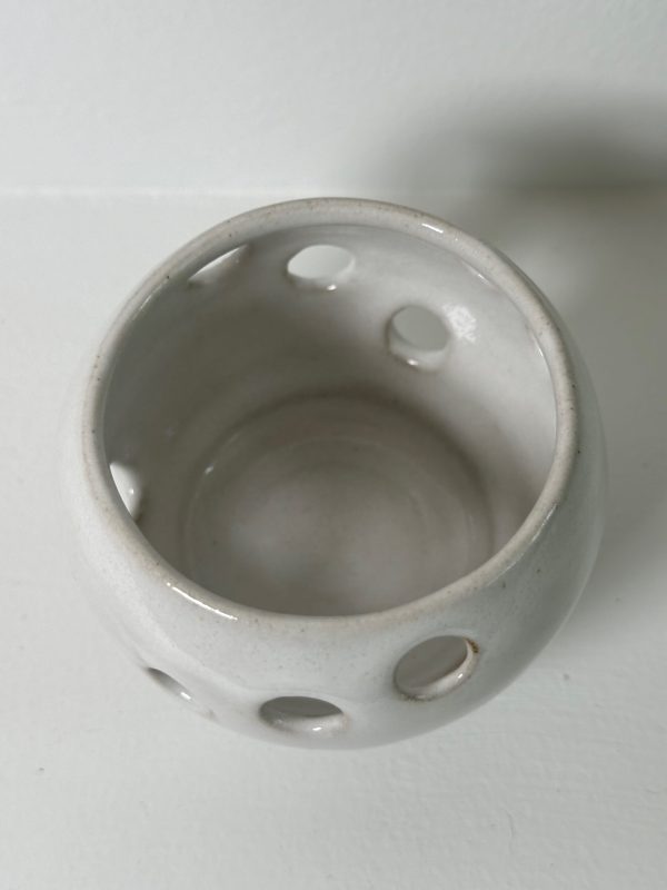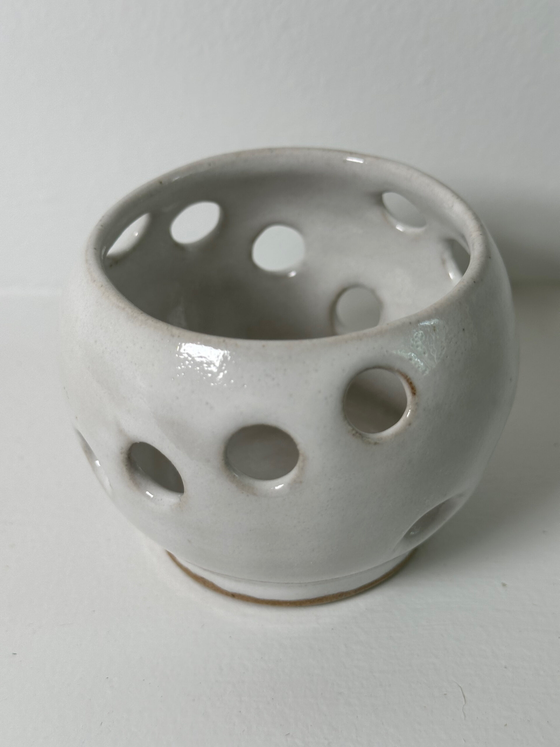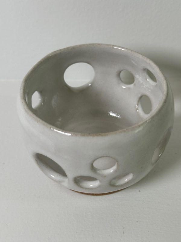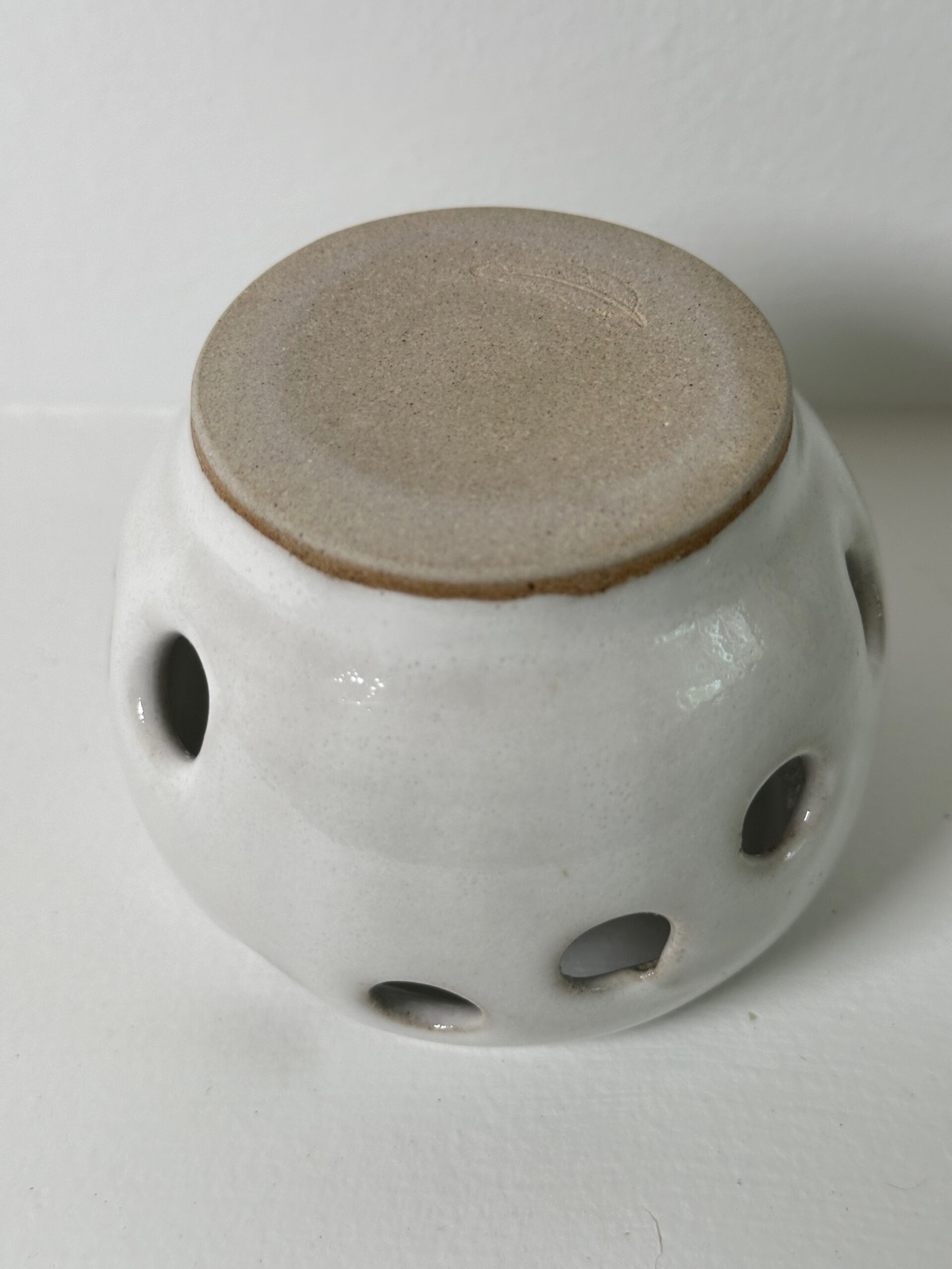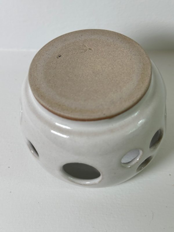 Mixed stoneware candle holder, wheel-thrown from white stoneware and coated with “Frost White” glaze.
