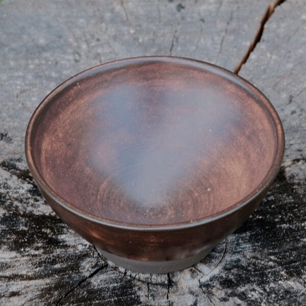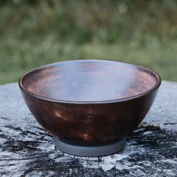 Stoneware bowl, wheel-thrown from black stoneware and hand-painted with “Chai Matte Shino” glaze.