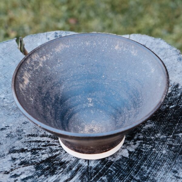 Stoneware bowl, wheel-thrown from white stoneware and hand-painted with “Cacao Matte Shino” glaze. Read more…