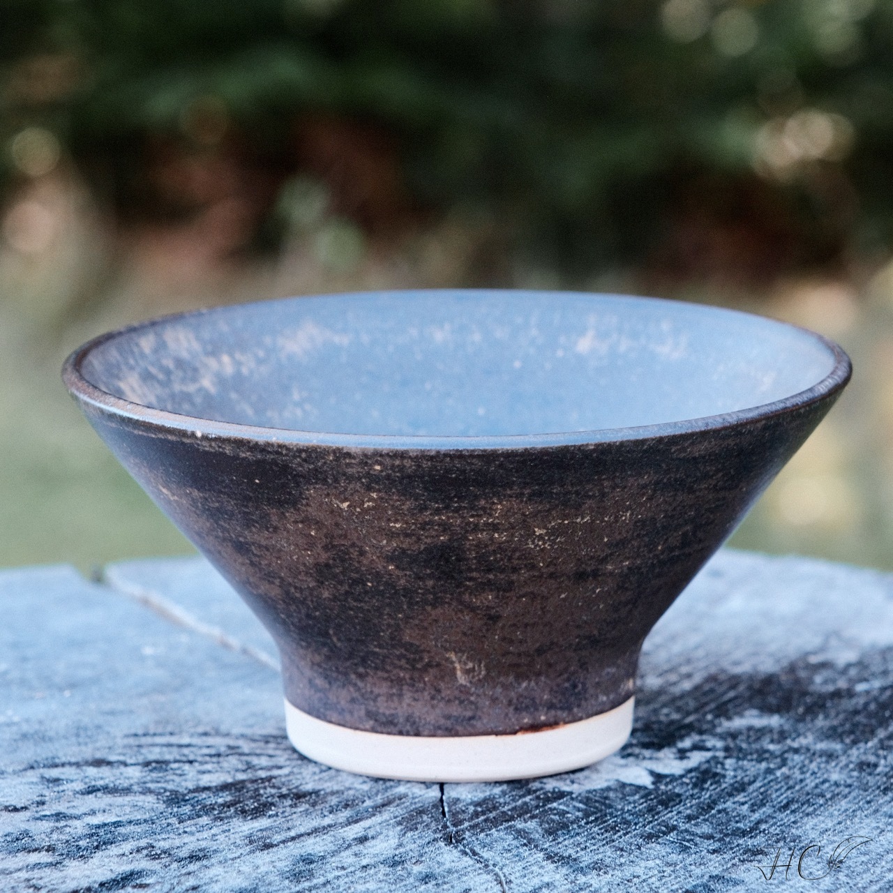 Stoneware bowl, wheel-thrown from white stoneware and hand-painted with “Cacao Matte Shino” glaze.