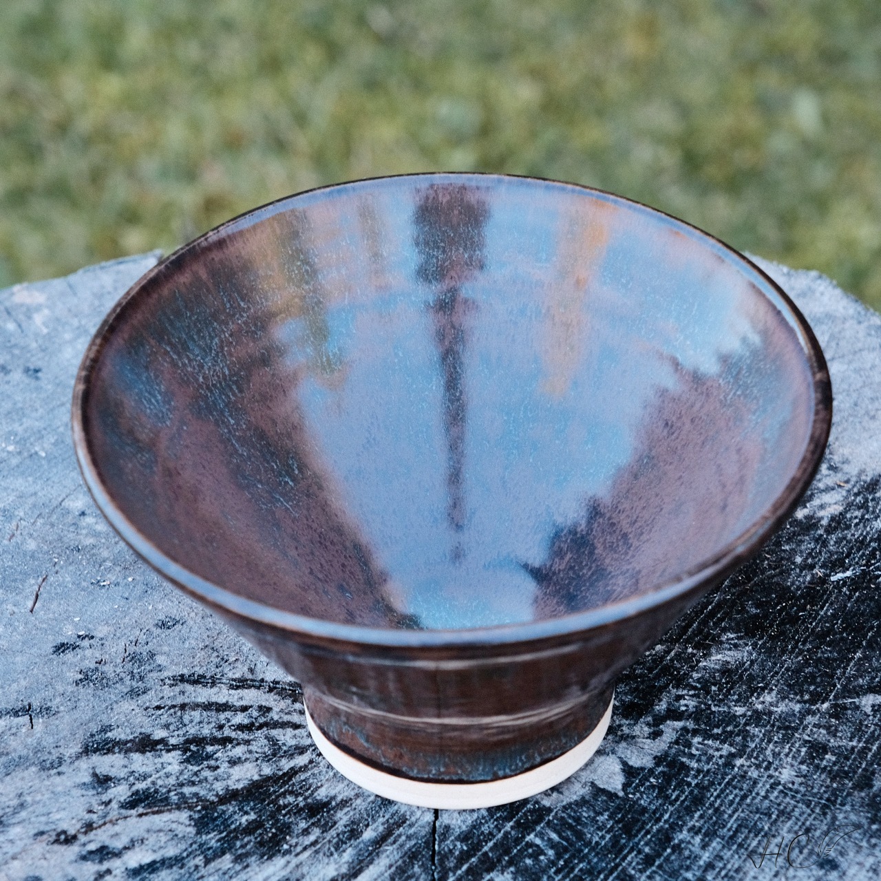Stoneware bowl, wheel-thrown from white stoneware and hand-painted with “Acai Gloss Shino” glaze. Read more…