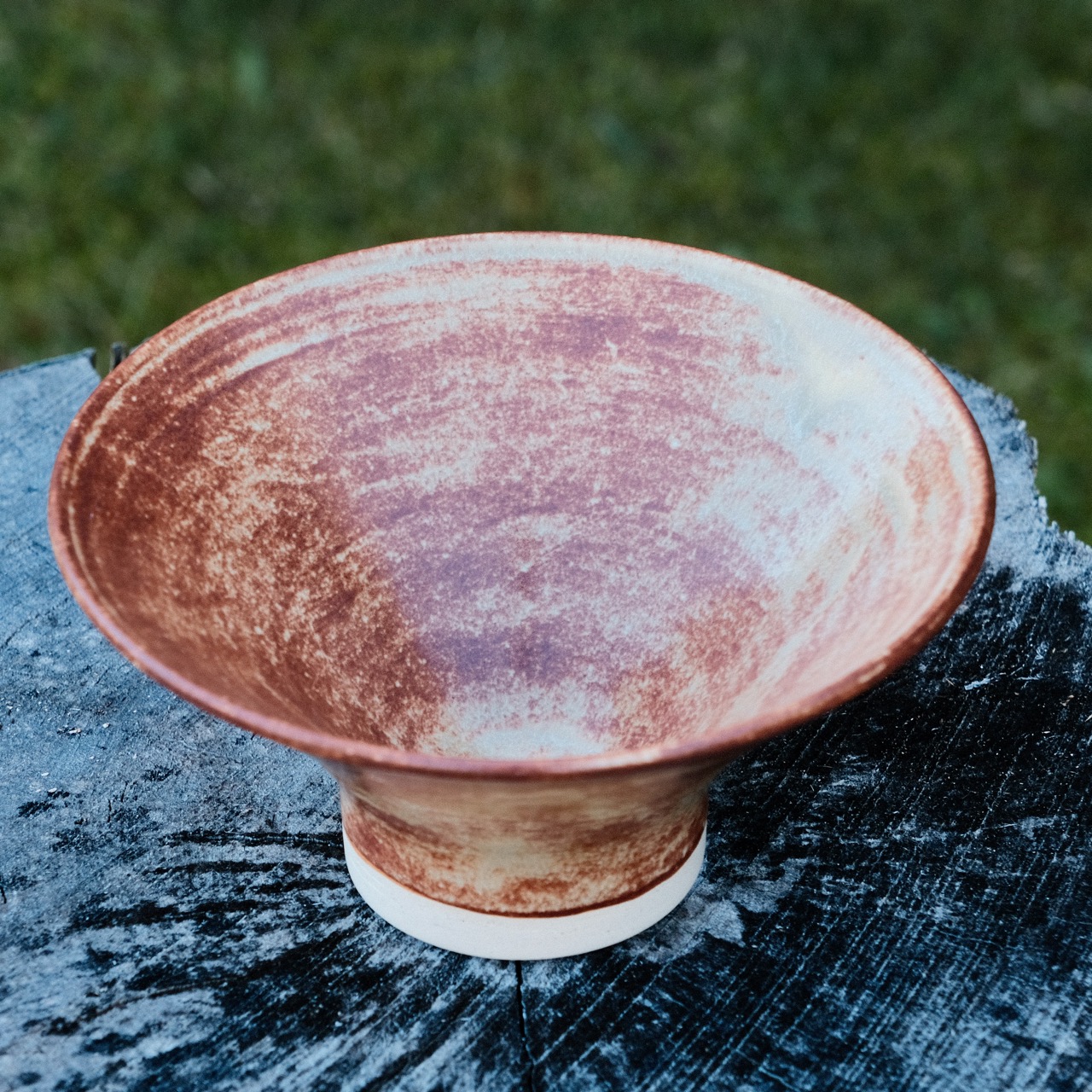 Stoneware bowl, wheel-thrown from white stoneware and hand-painted with “Chai Gloss Shino” glaze.