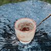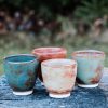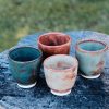Stoneware cup/tumbler, wheel-thrown from white stoneware and hand-painted with “Hibiscus Matte Shino”, “Oolong Gloss Shino”, “Chai Gloss Shino” and “Matcha Gloss Shino” glazes. Read more…