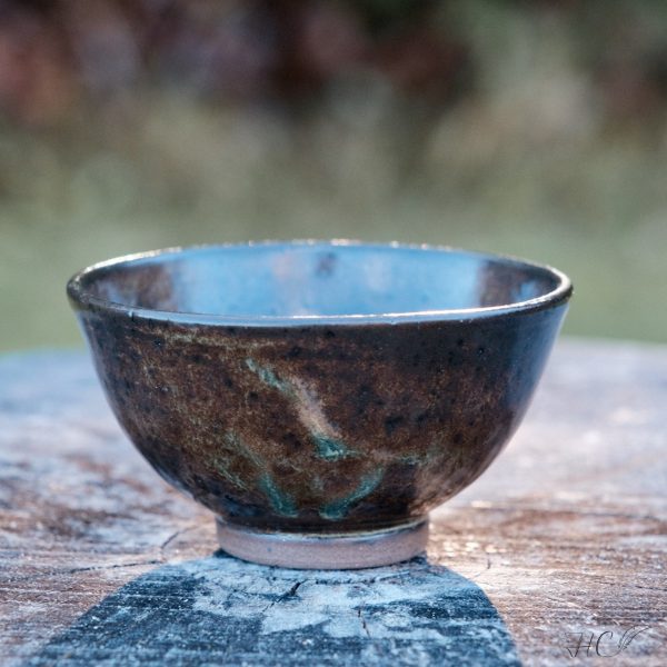 A pair of stoneware tea cups, wheel-thrown from dark stoneware and hand-painted with “Matcha Gloss Shino” glaze. Read more…