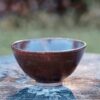 Stoneware tea cup, wheel-thrown from dark stoneware and hand-painted with “Hibiscus Matte Shino” glaze. Read more…