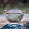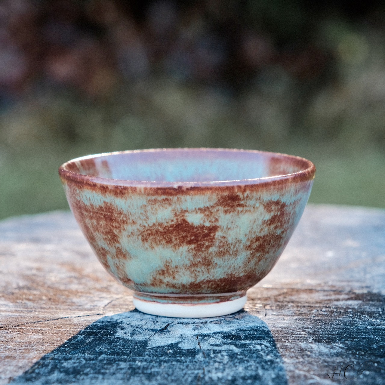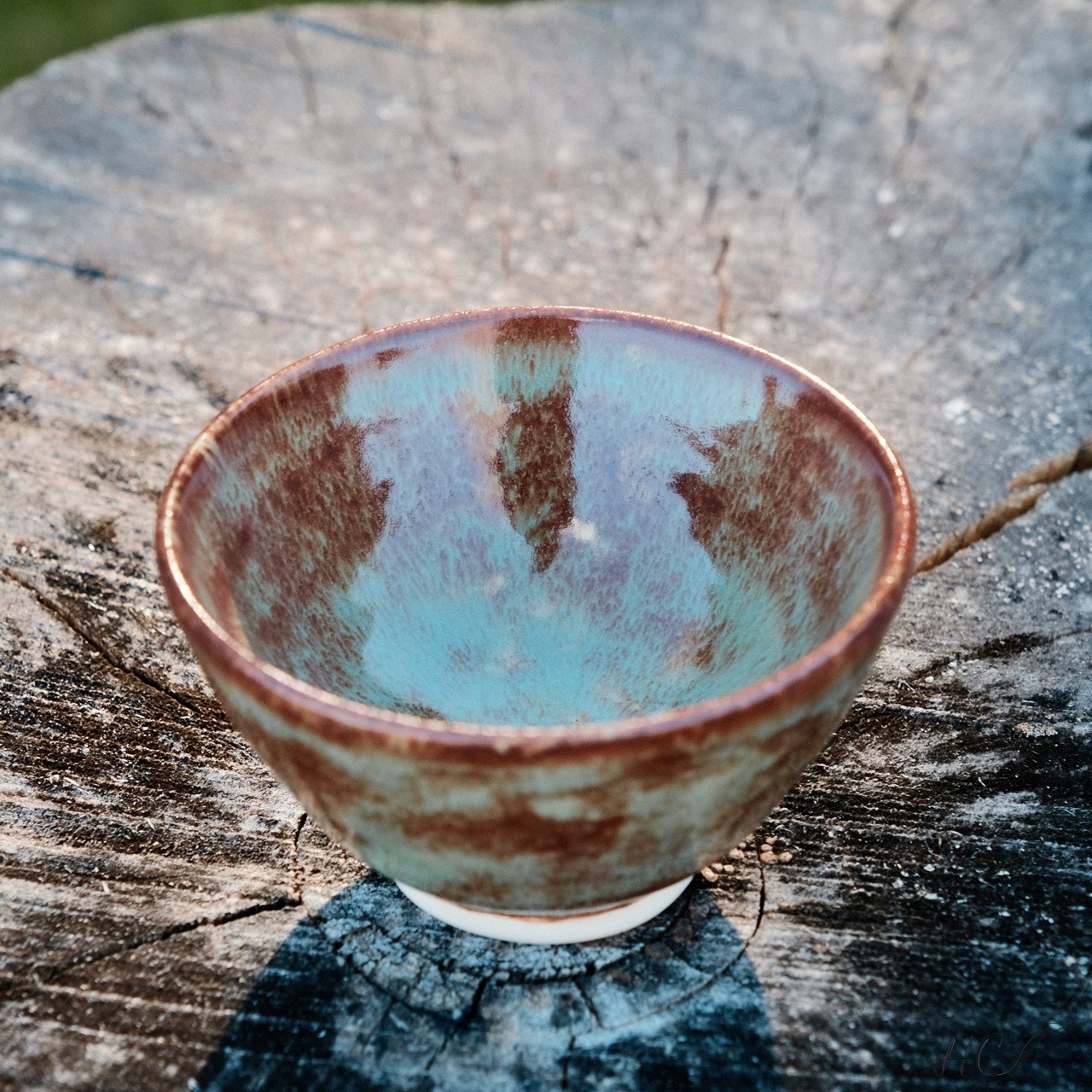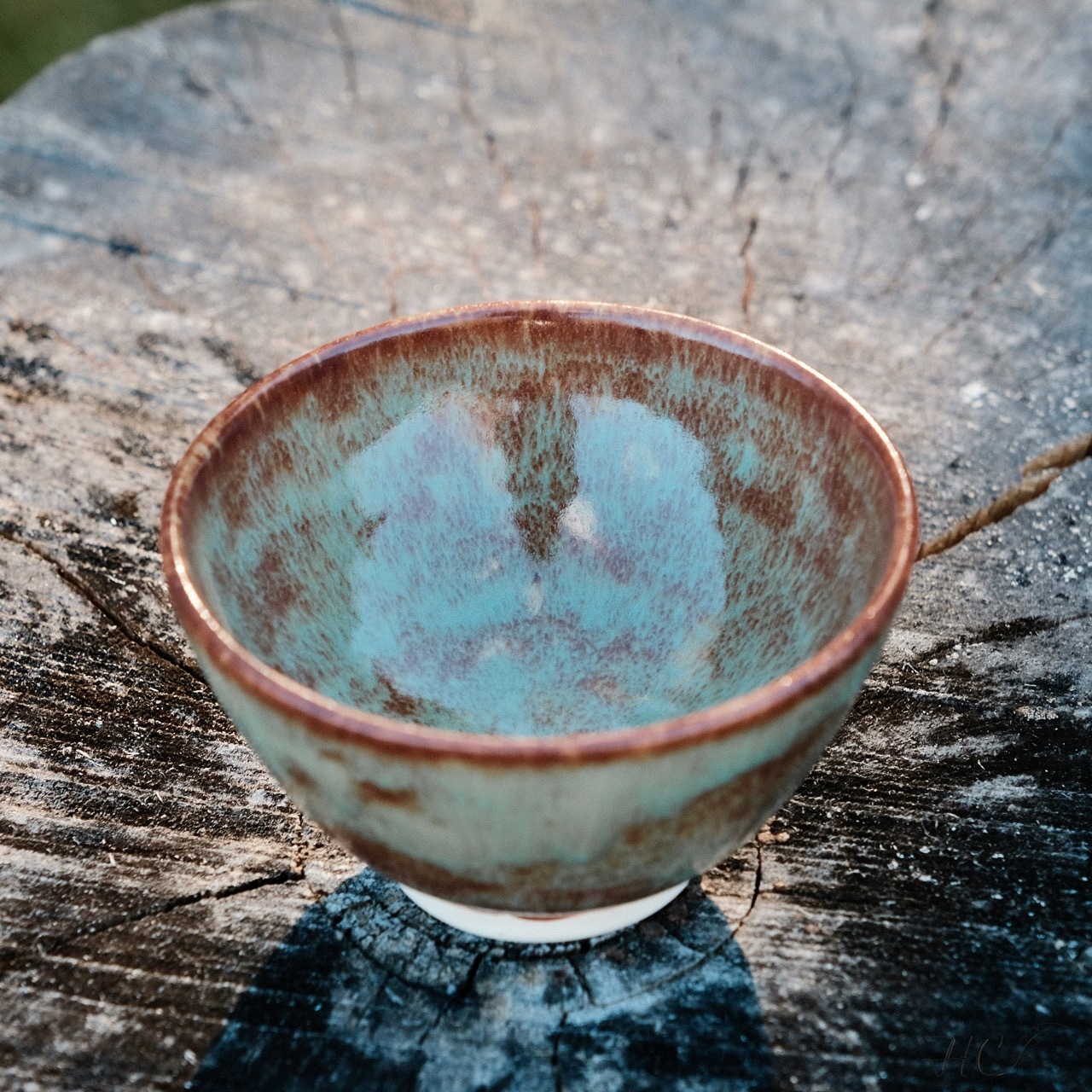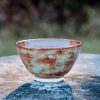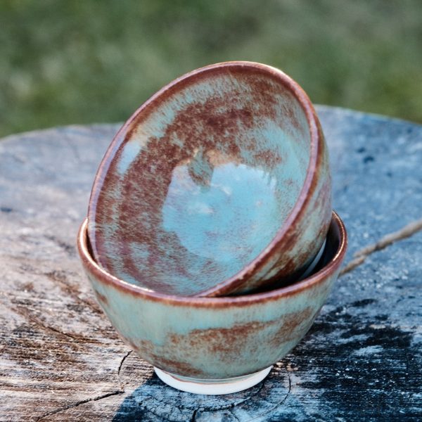 Pair of stoneware tea cups, wheel-thrown from white stoneware and hand-painted with “Oolong Gloss Shino” glaze.