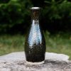 Tall stoneware vase, wheel-thrown from white stoneware and coated with “Starry Night” glaze.