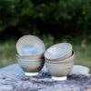 Stoneware tea cup/dessert bowl, wheel-thrown from white stoneware and hand-painted with “Smoke” glaze.