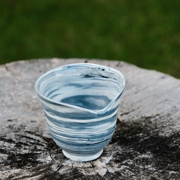 Marbled uneven porcelain vase, wheel-thrown from marbled white and black porcelain and coated with “Crystal Clear” glaze.