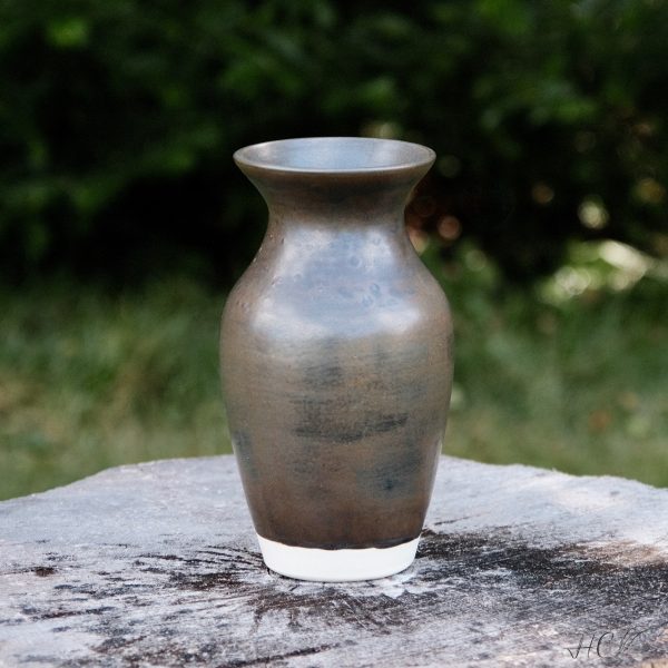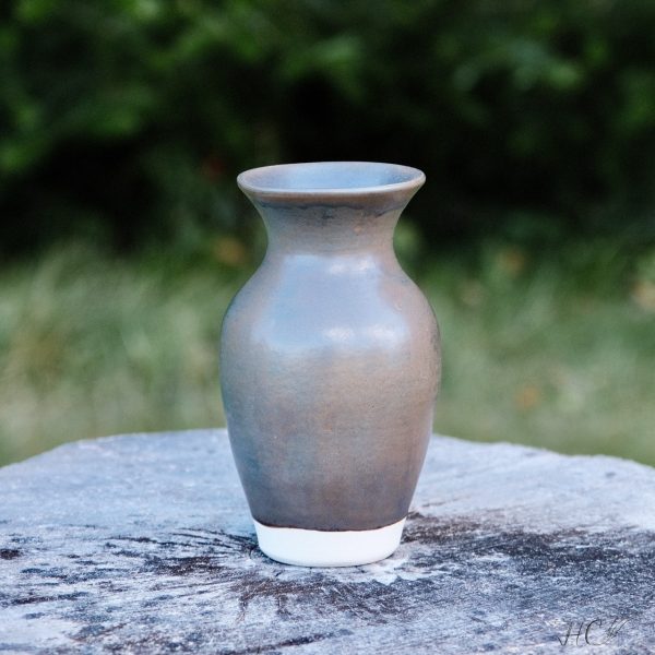 Stoneware vase, wheel-thrown from white stoneware and hand-painted with “Wrought Iron” glaze.