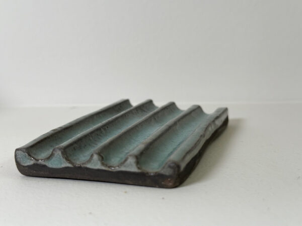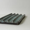 Vulcan black stoneware soap dish, wheel-thrown from black stoneware and coated with “Faux Celadon” glaze.